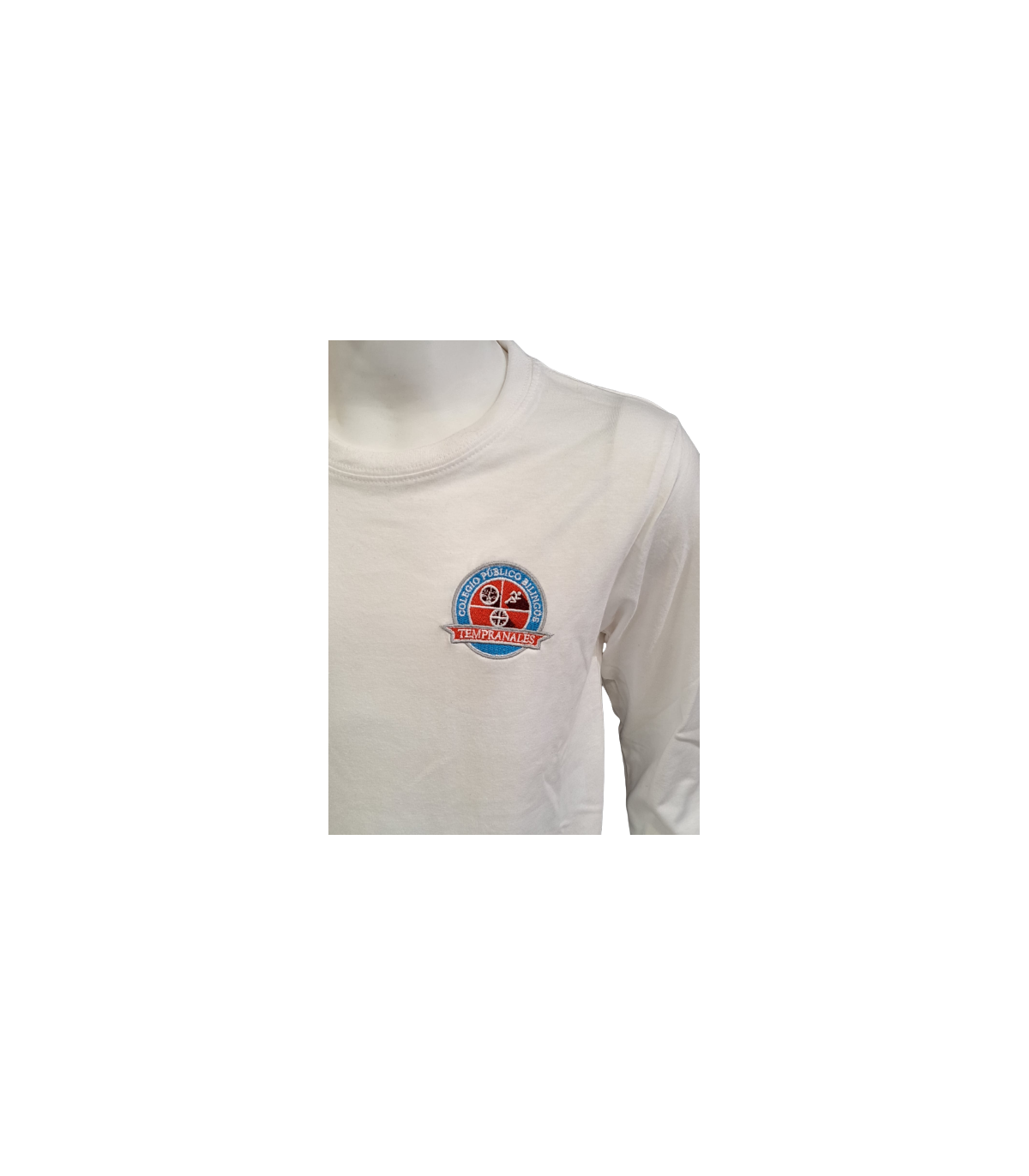 CAMISETA COLEGIOS UNIFORME ESCOLAR MANGA LARGA NIÑO UNISEX DEPORTES POLOS 5-3 CAM. CEIP TEMPRANALES M/LARGA BLANCO CON ESCUDO