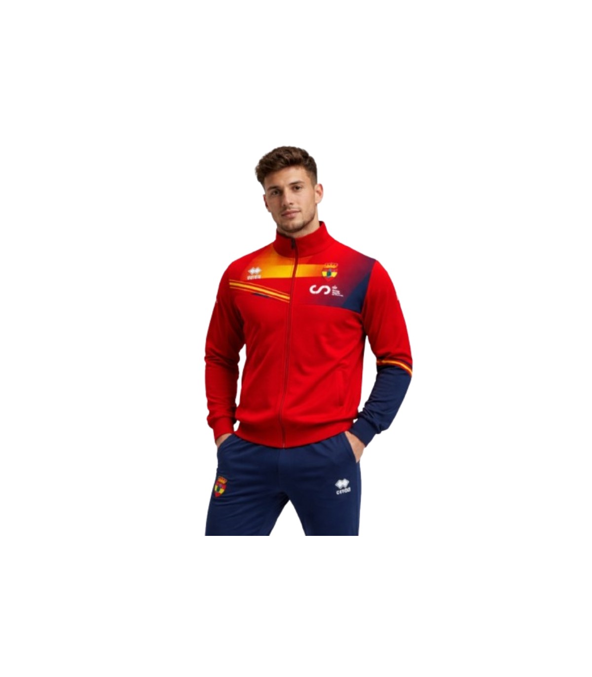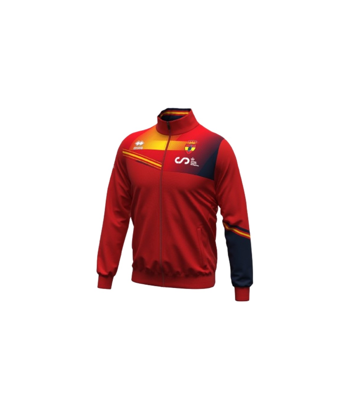 Cuenta con cremallera completa y cuello alto, lo que permite regular la temperatura según las condiciones climáticas. Incorpora los colores oficiales de España, el escudo oficial de la RFEE y la inscripción “ESPAÑA” en la parte trasera, aportando una imagen potente, reconocible y alineada con la identidad de la selección española de esgrima.