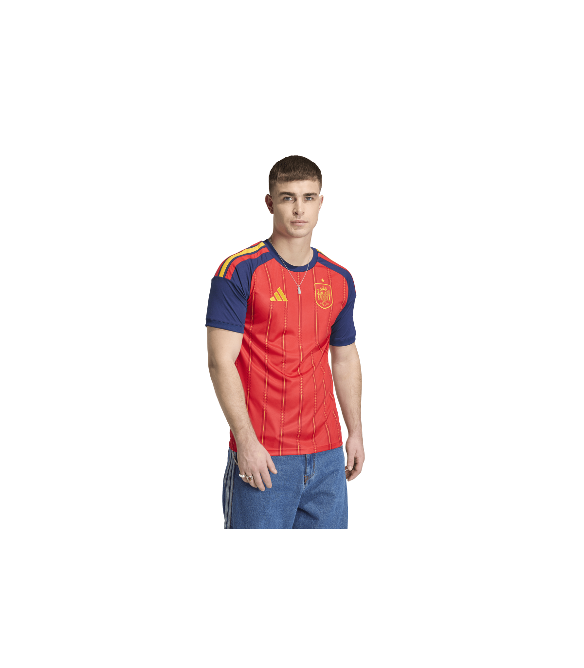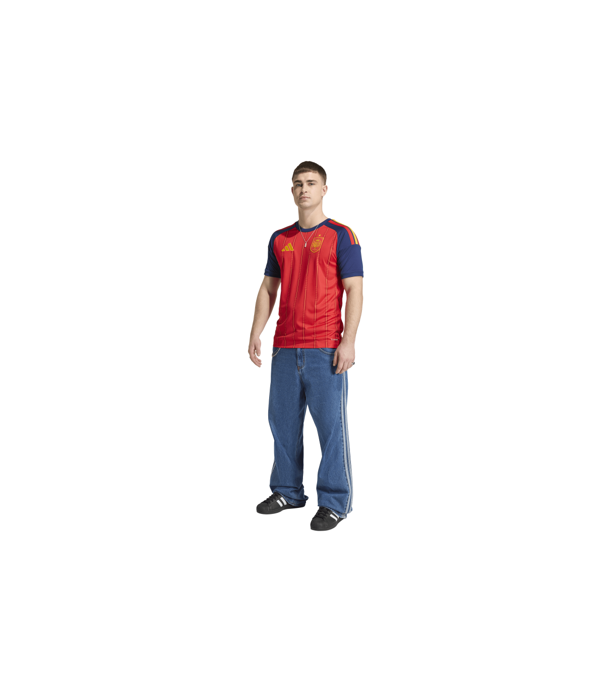 Su corte entallado crea una silueta elegante que se mueve contigo, mientras que el cuello de canalé añade un aspecto clásico. Los detalles de adidas y el escudo rematan el diseño, añadiendo un toque de elegancia. Ya seas desde las gradas o el campo, expresa tu orgullo por la selección española con esta icónica camiseta de la primera equipación España 26 de adidas que encarna el espíritu del fútbol